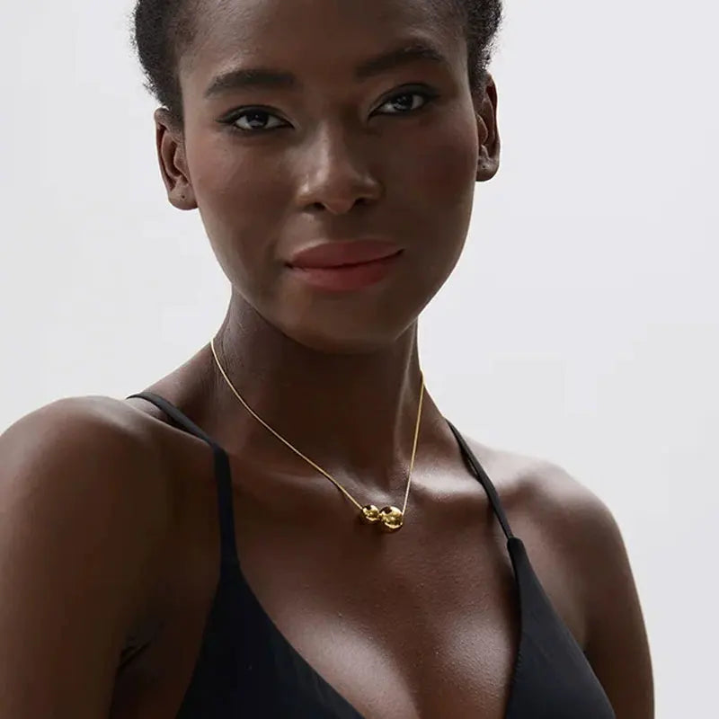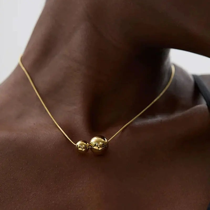 Colgante de cuentas redondas elaborado en acero inoxidable de alta calidad, diseñado para resistir el uso diario sin comprometer su brillo. Su composición hipoalergénica lo hace ideal para pieles sensibles, evitando irritaciones y reacciones alérgicas. Resistente al agua, mantiene su aspecto impecable incluso con exposición frecuente a la humedad. El acabado dorado confiere elegancia versátil, combinando con cualquier estilo personal. Joya de metal resistente que aúna durabilidad, confort y sofisticación en una sola pieza.